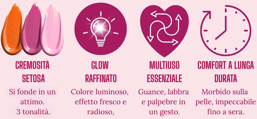 Cheekytta nasce per semplificarti la routine: uno stick pratico per guance, labbra e occhi, con un effetto naturale e facile da sfumare.